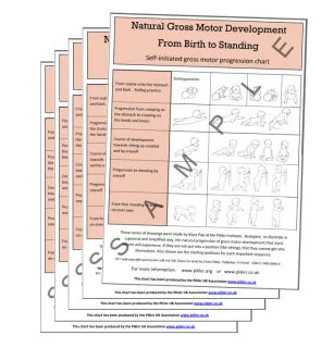 With the beautiful illustrations, drawn by Klara Pap at the request of Emmi Pikler, the poster describes clearly the basic stages of gross motor development of a child given space and time for free movement.